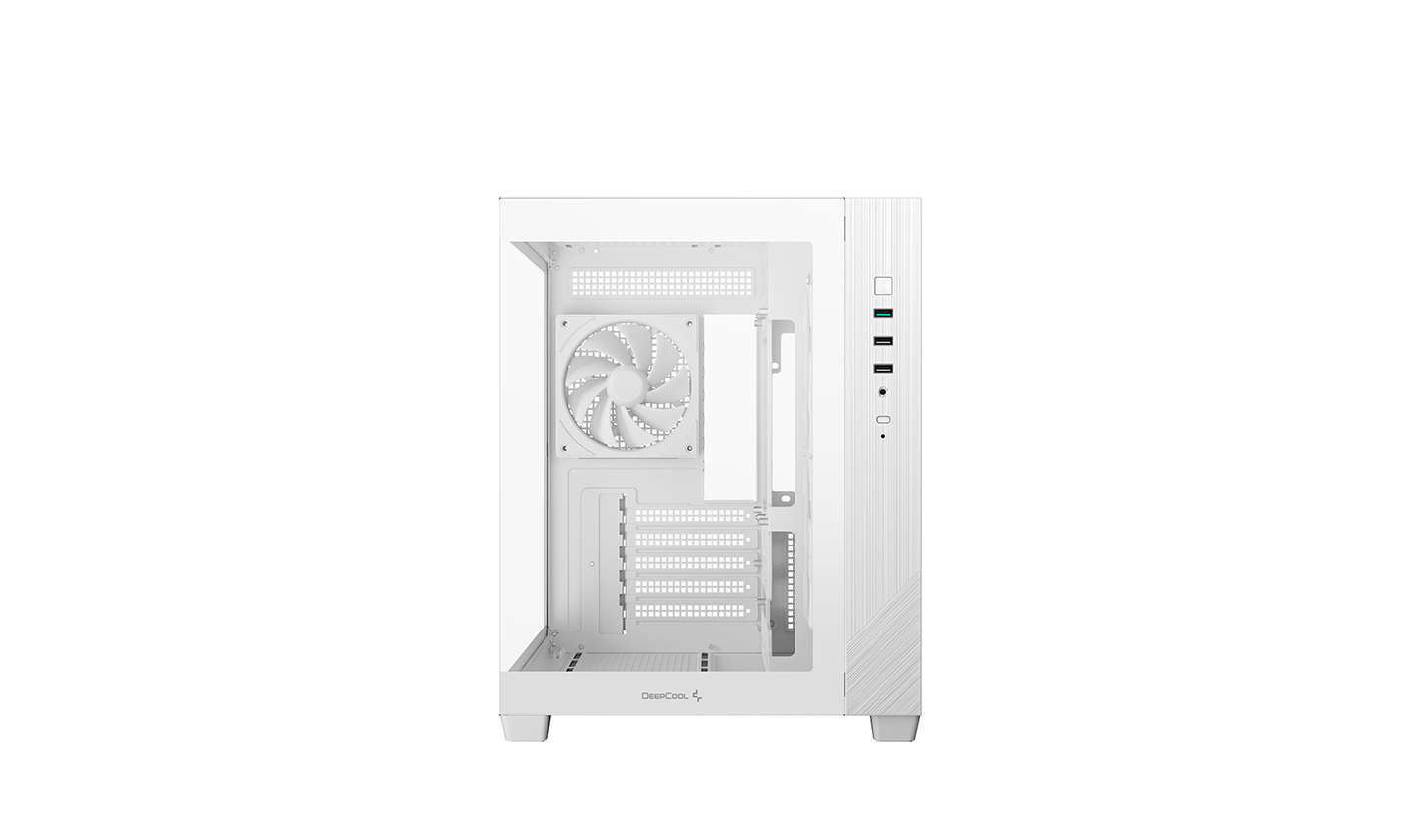 CG330 3F WH è dotato di due ventole serie FL a pale inverse sul lato e di una ventola standard sul retro preinstallate, che generano un canale di flusso d'aria orizzontale che dissipa efficacemente il calore. L'esclusivo design delle luci di DeepCool illumina in modo uniforme il tuo assemblaggio.