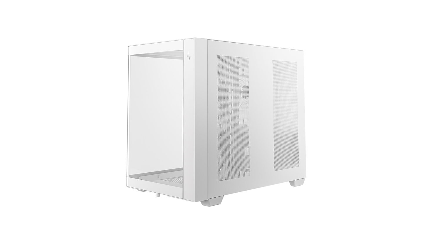 CG530U 4F WH è un case panoramico con pannello in vetro curvo, progettato con design a doppia camera. Dotato di quattro ventole ARGB preinstallate, è già pronto per garantire flusso d’aria e illuminazione efficaci.