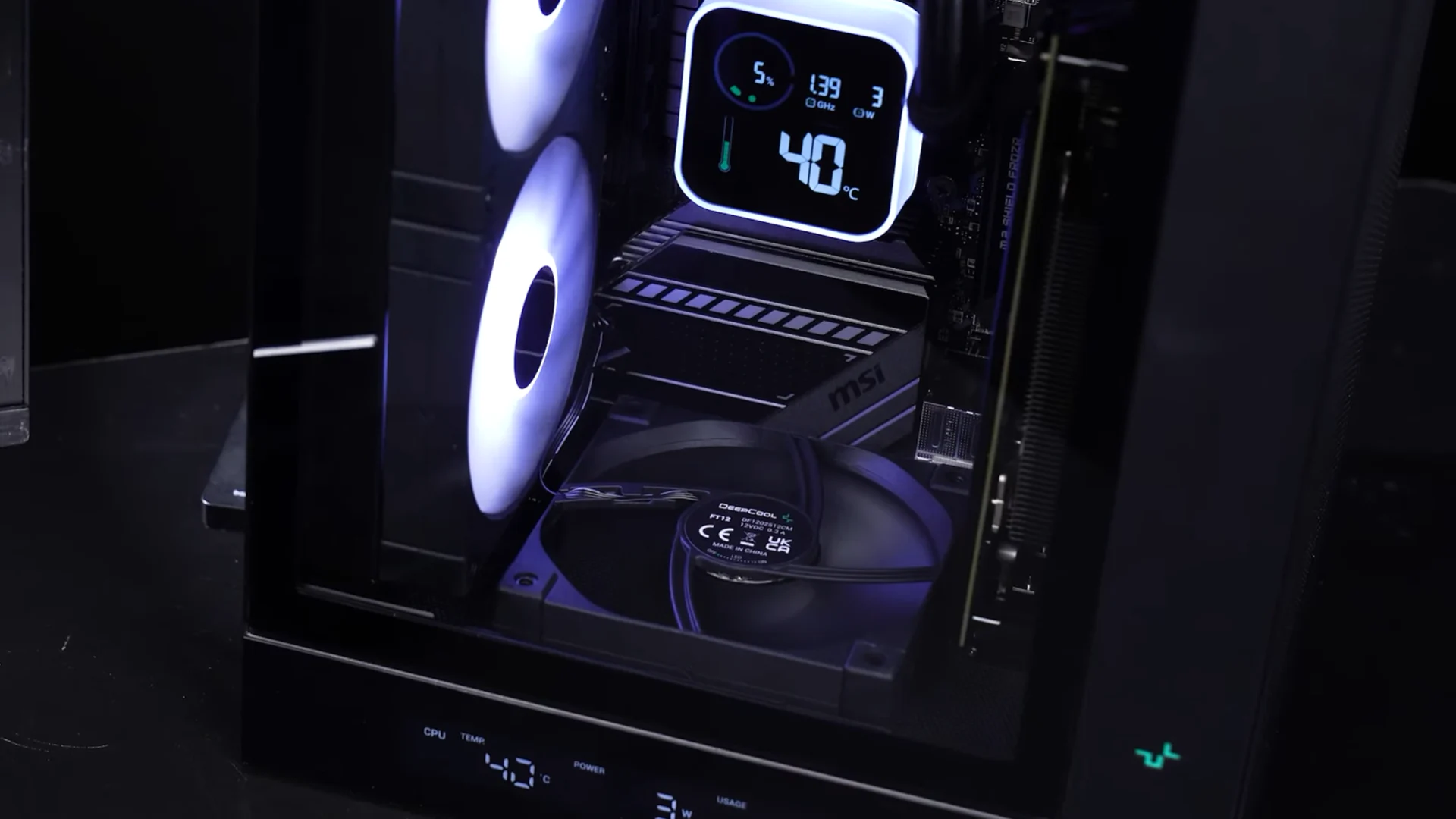 Nella base del case è integrata una barra di visualizzazione digitale per monitorare i parametri vitali del sistema in tempo reale. La modalità dello stato può alternare tra CPU, GPU e PSU.